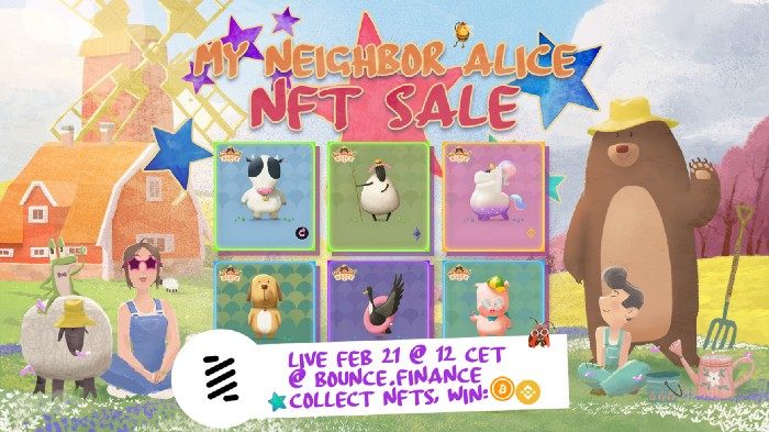 休闲农场区块链游戏《My Neighbor Alice》于2021年2月22日开启限量动物卡牌NFT贩售。