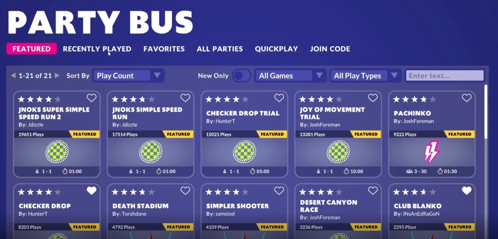 派对巴士新增大量功能,以助于找到可玩的出色区区块。