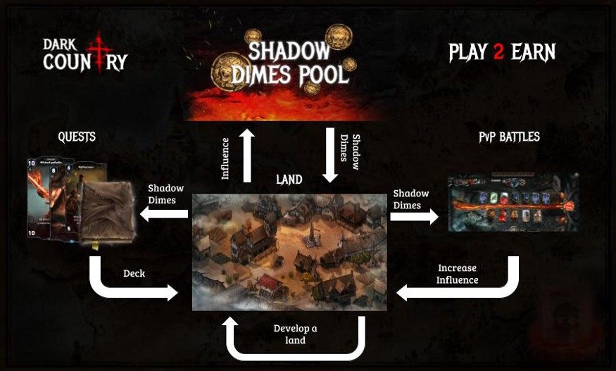 Introducing the Lands and new gameplay layer into Dark Сountry we integrate the existing card game mechanics to create an absolutely new Play2Earn experience both for players and Landlords: