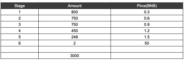 本次总共将有3000张NFT卡牌以盲盒形式进行出售。售卖规则基于著名以太坊NFT项目HashMask。每个阶段销售一定数量的卡牌,下一阶段的卡牌将开始以更高的价格销售,直到完成总共6个售卖阶段。