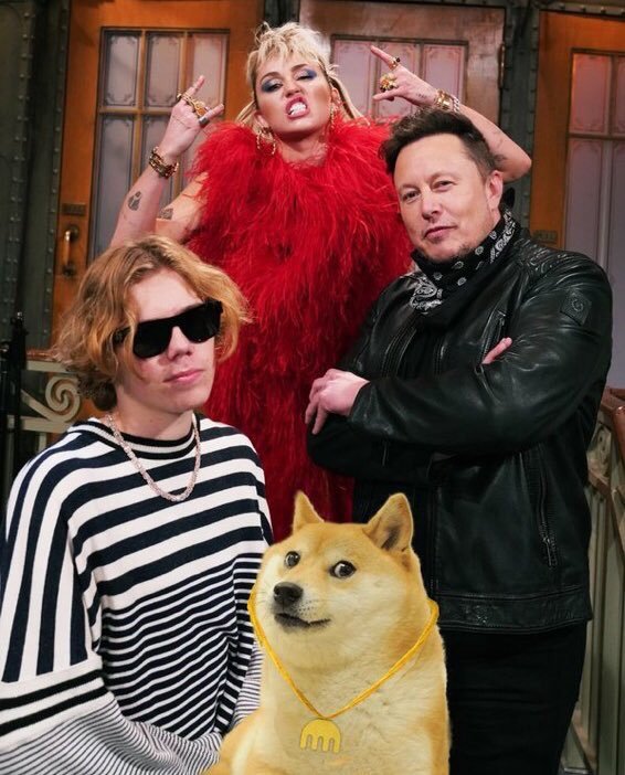 特斯拉CEO埃隆·马斯克发布推文预告其即将亮相综艺节目《周六夜现场》(Saturday Night Live,SNL)。其推文附带了节目现场照片,而在这张预告照片中居然又出现了币圈玩家们熟悉的DOGE!让人不禁感叹马克斯不愧是自称“狗狗币之父”的头号粉丝。