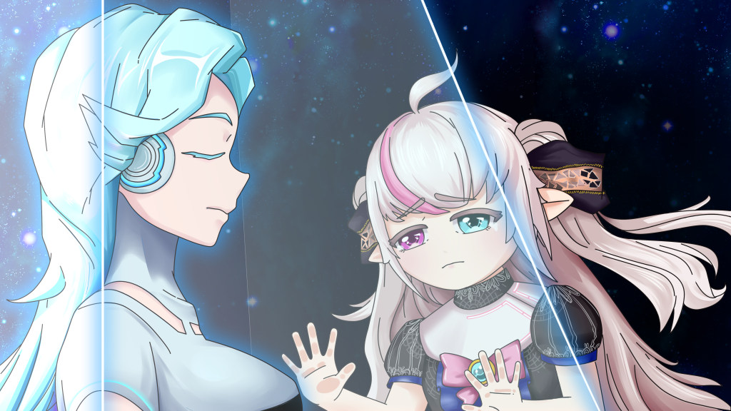 尤尼的电子化并不完全,因此无法连接上思维回路使用创造力,只能不断收集散落的能量碎片送往核心,维持住姐姐和这个世界的存在。她不知道之后该怎么办,但唯独不愿再看着姐姐从她的眼前消失。