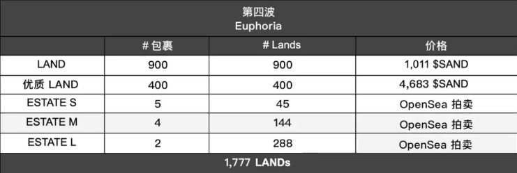 The Sandbox 第四轮土地售价表