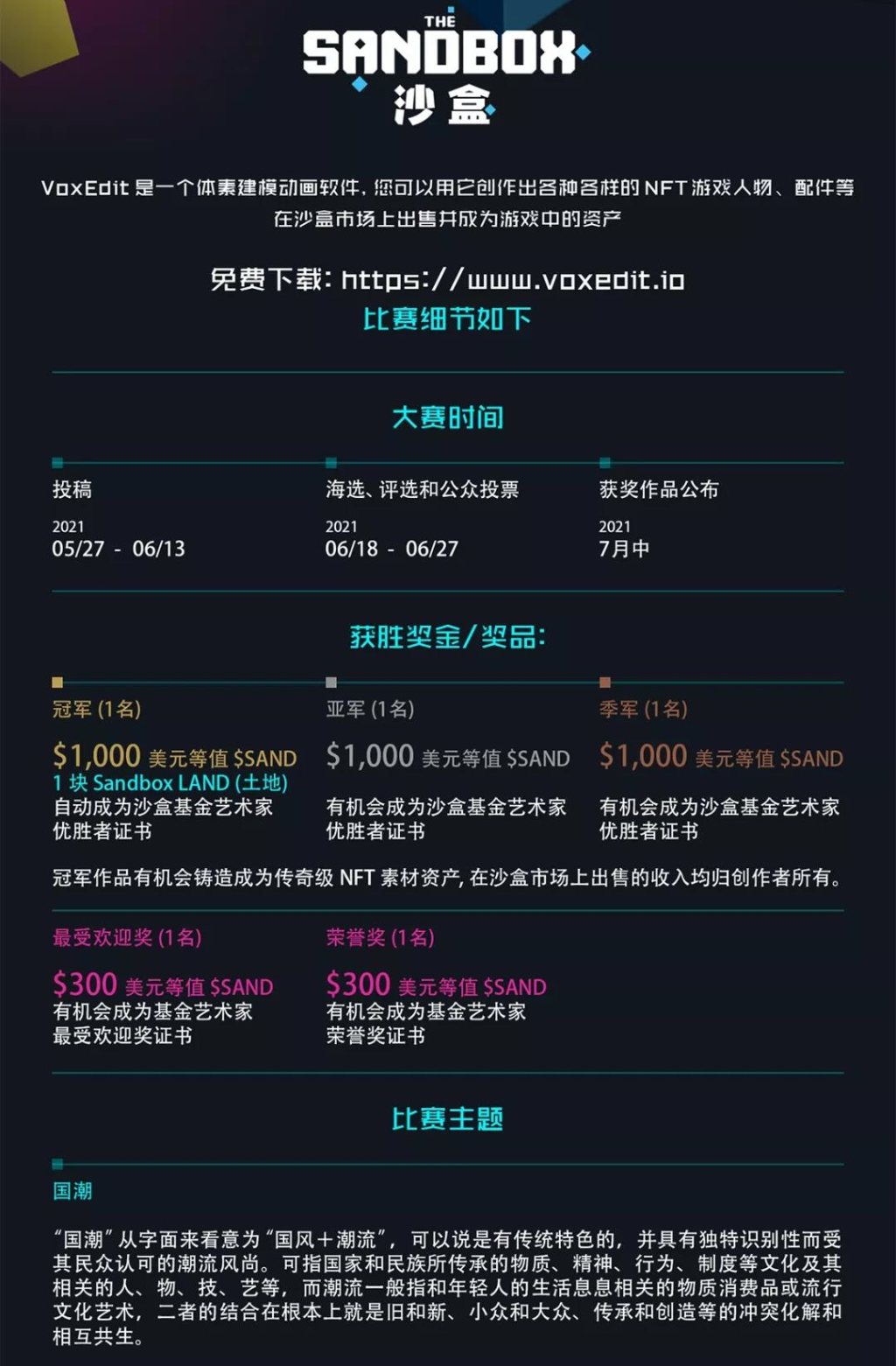 The Sandbox 第二届 VoxEdit 中国创作大赛2021来啦!