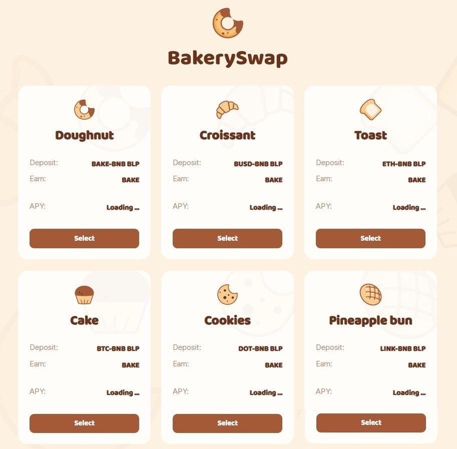 然后,通过将流动资金池代币(BLP)放到称为甜甜圈(Doughnut)、华夫饼(Waffle)、面包卷(Rolls)或牛角包(Croissant)的矿池中,用户可以挖矿更多BAKE代币。