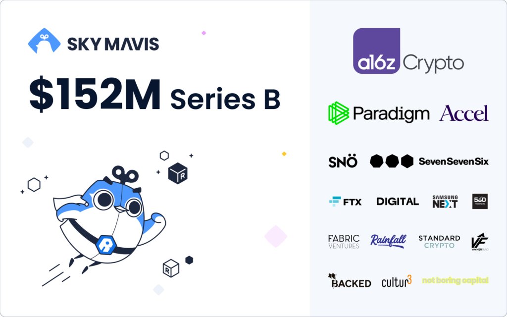 NFT 区块链游戏《Axie Infinity》(幻想生物)开发商 Sky Mavis 官方宣布完成1.52亿美元的B轮融资,a16z领投,Paradigm、Accel、FTX、Samsung Next等参投。官方表示,新融资将用于持续推动 Play-to-Earn(边玩边赚钱)游戏模式的发展,并从全球各地引进优秀人才,扩大其基础设施规模以实现预期增长,并建立自己的分销平台以支持游戏开发者创造基于NFT的游戏。