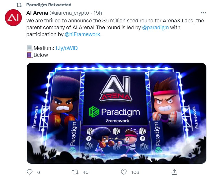 区块链游戏公司ArenaX Labs获500万美元融资!以太坊原生链游AI Arena开发中!