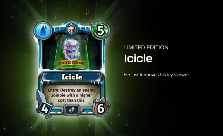 到目前为止售出最贵的卡牌是限量版Icicle,价格是0.6 ETH(约100美元)。