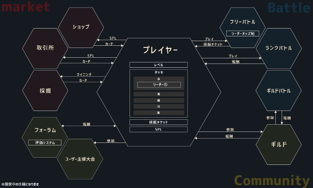 根据这些功能玩家可以得到在游戏中使用的卡牌(资产),组成他们的卡组。