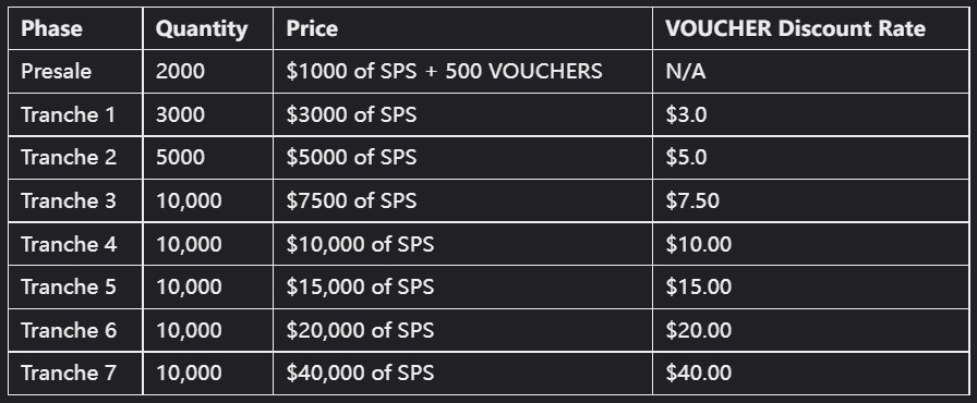 开发者已经将定价结构化,这些license将在未来几年内可用。虽然,随着销售的进行,license可能会很快售罄。一些人会认为SPS和VOUCHER代币的较高价格是不合理的,但随着炒作的不断深入,价格逐年增加,人们会知道今天的交易有多好。