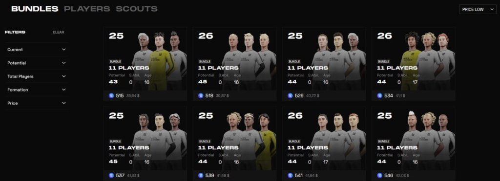 MetaSoccer在其市场上推出了一个新板块,允许玩家购买由11至18名球员组成的整个球队。此举的特点就是球队的成员是随机创建。