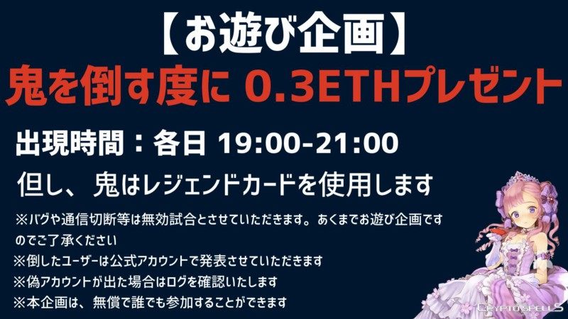 游戏企划:打倒鬼的话就赠以0.3ETH!
