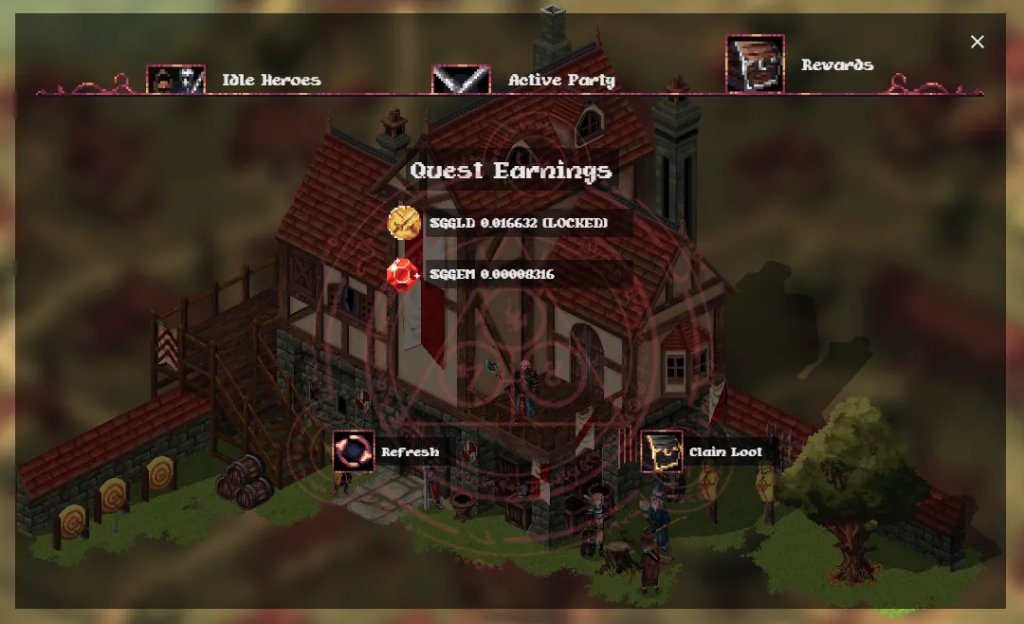 英雄在完成任务回来后,可以点击Refresh查看奖励详情