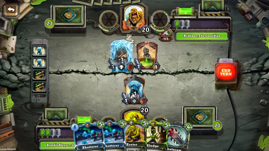 此外,当直接攻击玩家时,会消减与攻击力相等的自己的生命值,因此请仔细考虑是要减少敌人的僵尸还是减少他们的生命,并制定好策略。