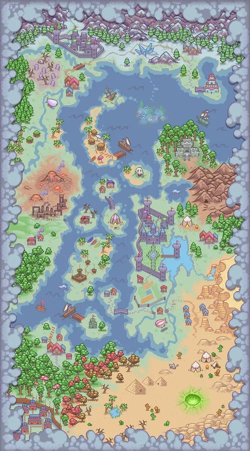 BitMates 世界拥有七个主要区域和 21 个子区域。目前,玩家能够探索位于地图东侧的五个区域:Castaway Cove、Interloper's Cavern、Brightwood、Braveheart Barracks 和 Kingdom of Solaire。