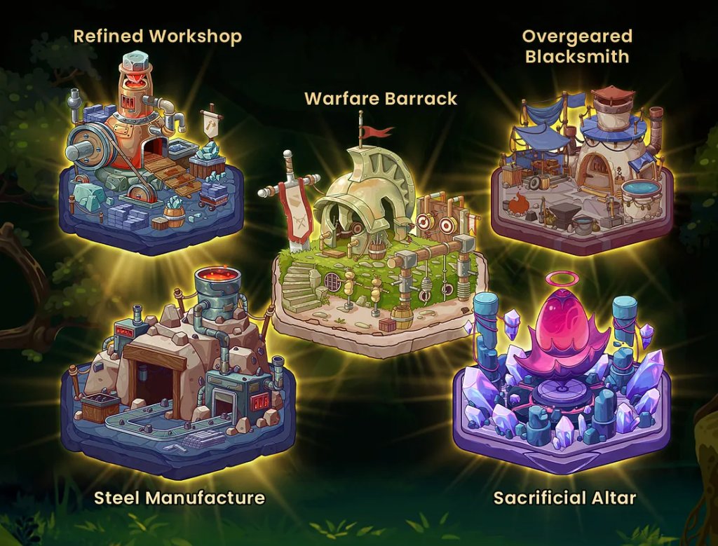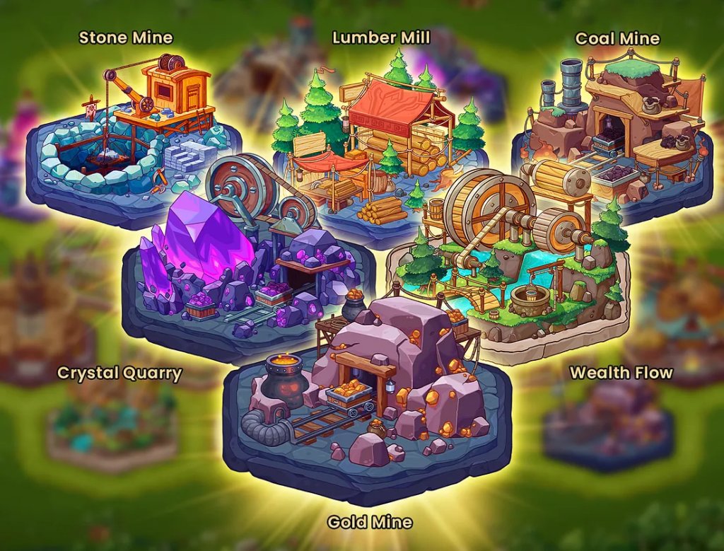 - 采矿建筑(可选):这些建筑的主要功能是生产玩家可以在游戏中使用的资源(例如:采石场、钻石矿等)。