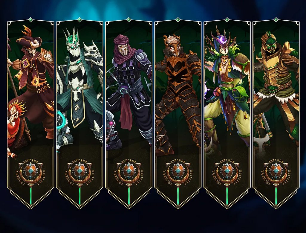 英雄以玩家形象的方式出现;英雄升级,玩家会获得奖励;英雄有独特的皮肤,皮肤由皮肤生产池中随机生成的,每套皮肤有6个组件,穿戴同一套皮肤的3件以上,英雄将获得额外属性。