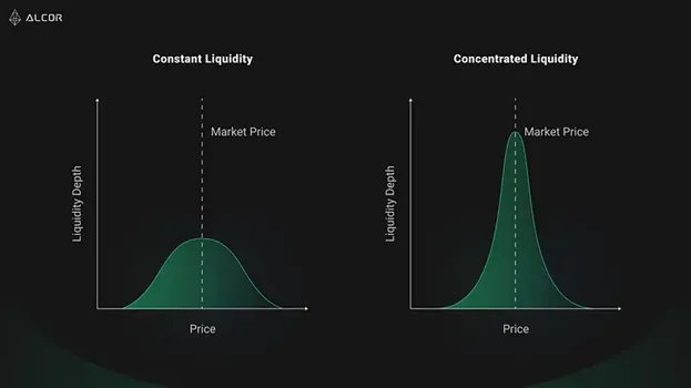 集中流动性是一种改变游戏规则的概念,它在指定的价格范围内分配流动性,而不是在无限的价格区间内均匀分配。这种独特的方法允许流动性提供者在较小的价格区间内积累资本,从而形成个性化的价格曲线,提高资本效率,并为交易者提供更深层次的流动性。因此,它解决了传统池子中的低效率和不可预测的损失。