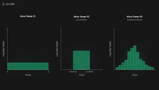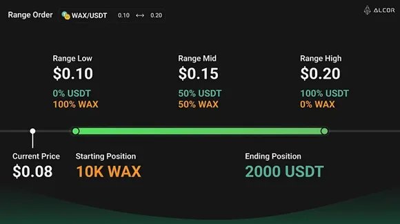 Alcor Swap AMM v2具有范围订单功能,允许LP在特定价格范围内存入单个令牌。当市场价格进入所选范围时,LP可以将一种资产卖出换取另一种资产,并获得换汇费用。这一开创性功能赋予LP对其交易的无与伦比的控制。