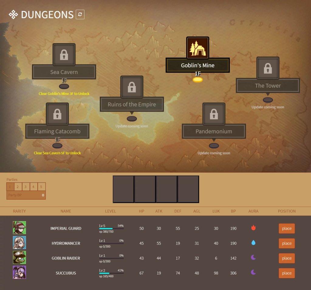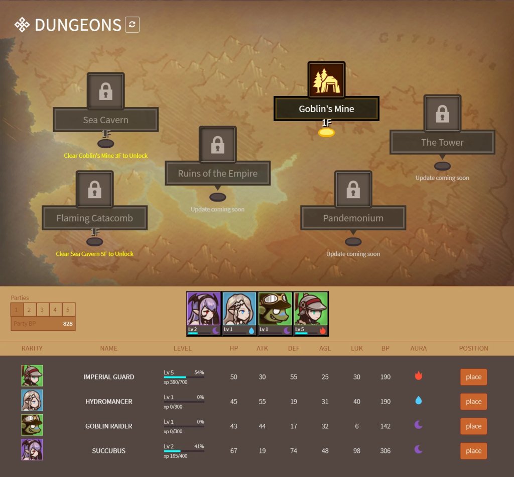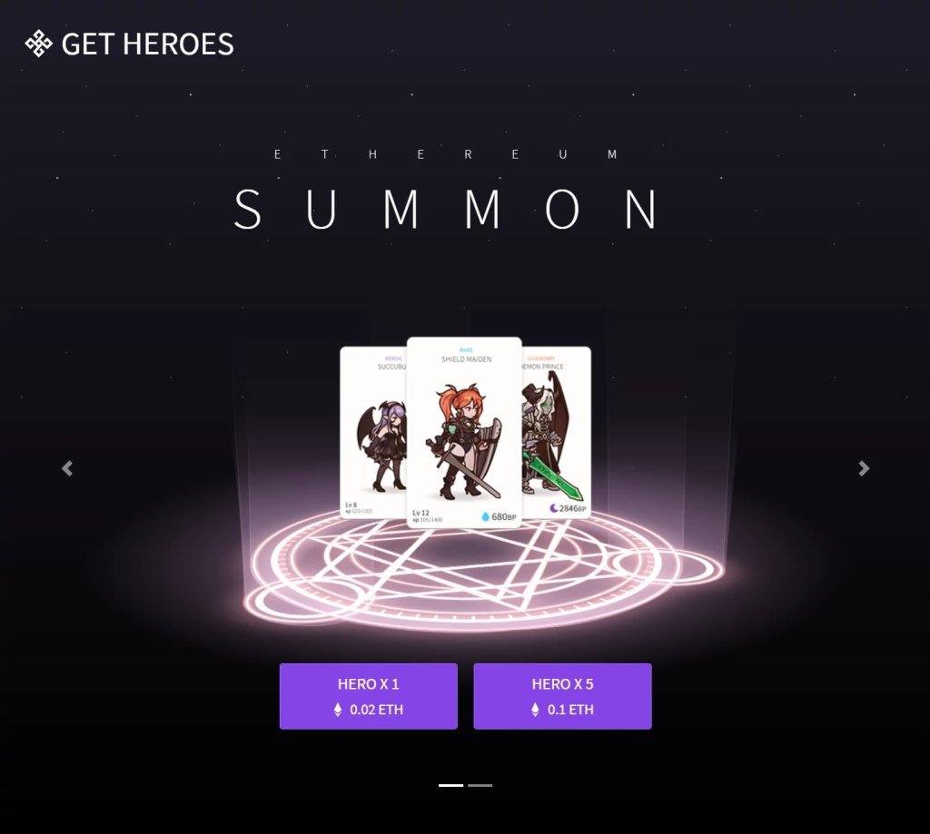 初始是没有英雄的所以要在这购买英雄。有两种购买方法,ガチャ(扭蛋)(ETH支付)和固定キャラ(固定英雄)(游戏中固定货币GOLG购买)