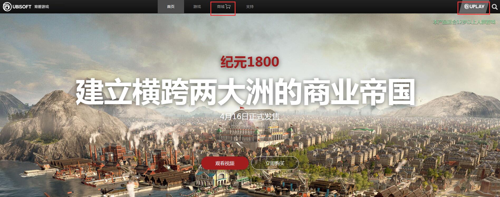 步骤其实超简单的哦,首先你要确定自己是一名已满12周岁的玩家,然后打开育碧游戏官网,点击上方菜单中的“商城”,如果遇到无法打开的情况,在右上角处点击下载UPLAY——这是育碧游戏的官方平台(类似Steam)。