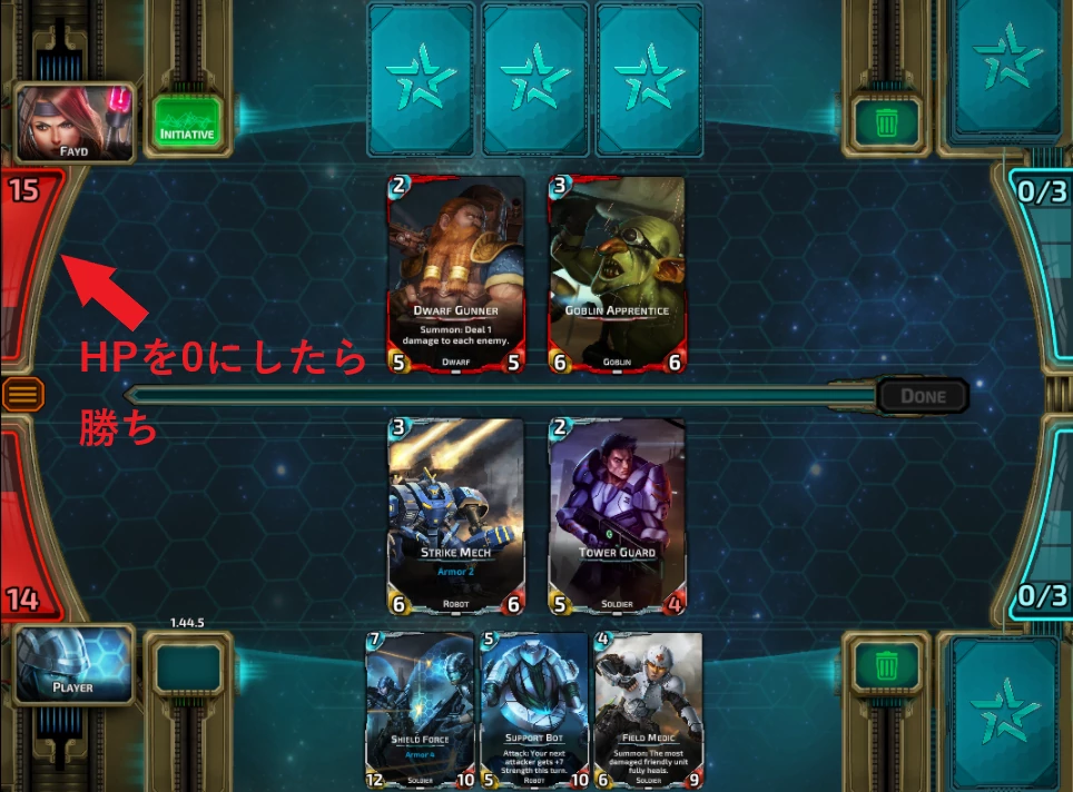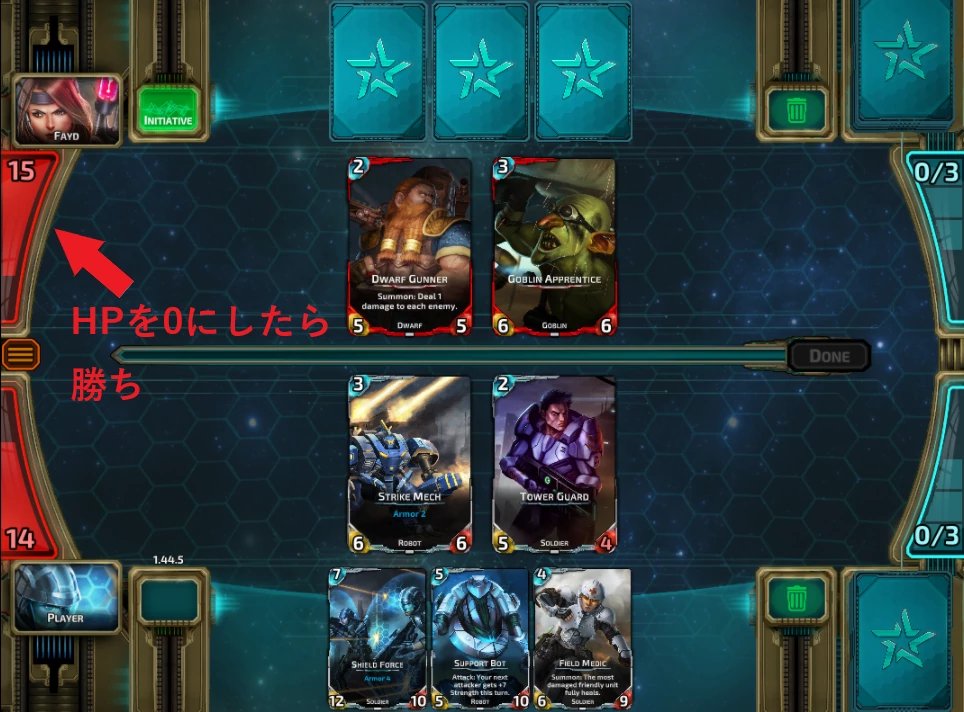 和普通的卡牌游戏一样,让对手HP值为0后就获胜了。