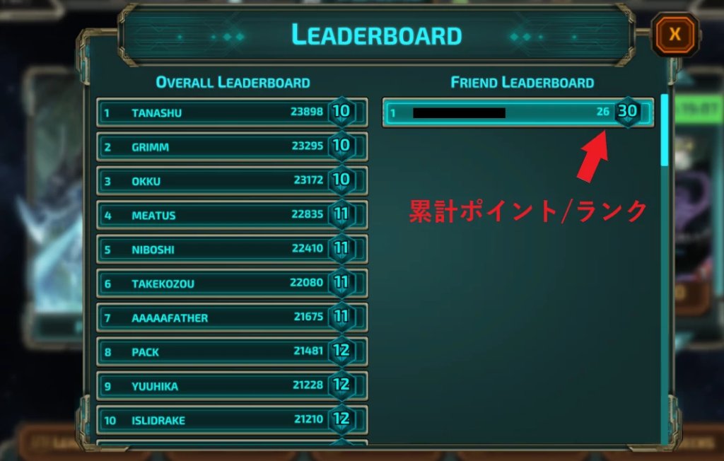 在排行榜中可以确认现在累积的得分和排名,以及其他玩家的排名。