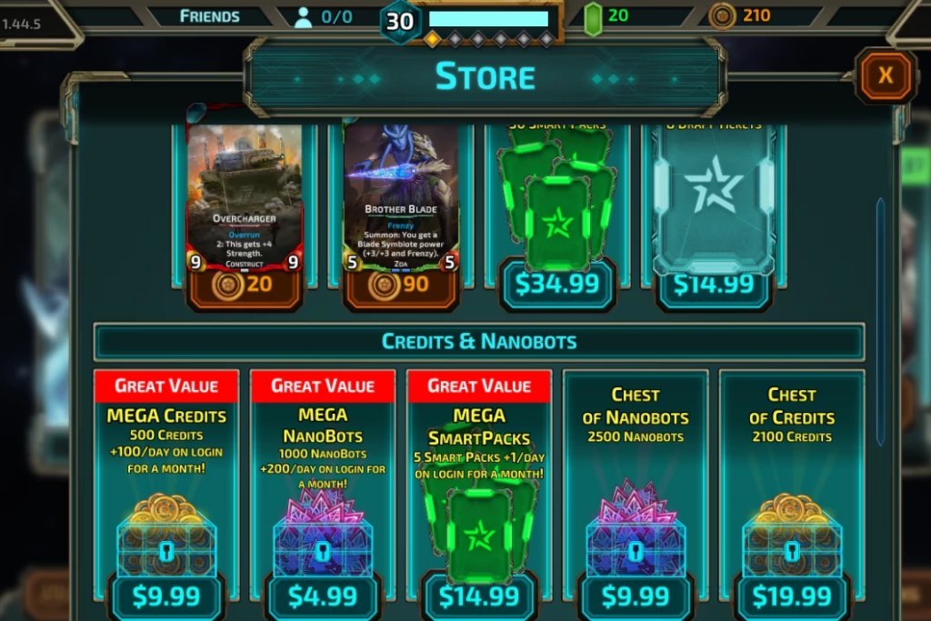 在商店中可以购买游戏中的货币和用美元购买数据和卡牌。