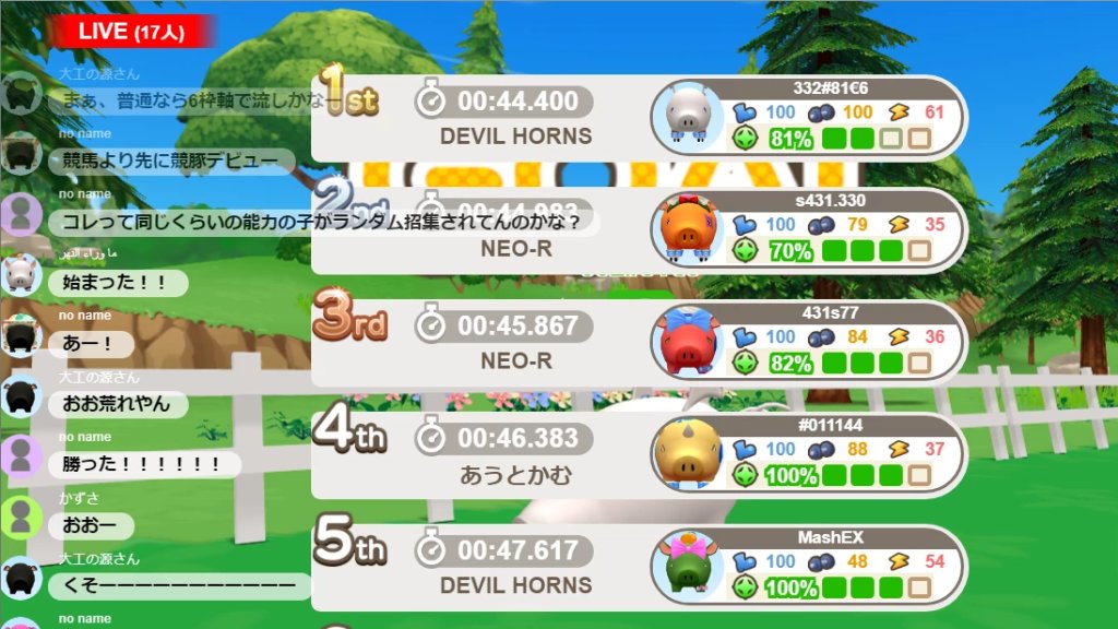 通过选择下注竞赛,可以确认其竞赛中上场的猪的预先信息和现在的赔率。