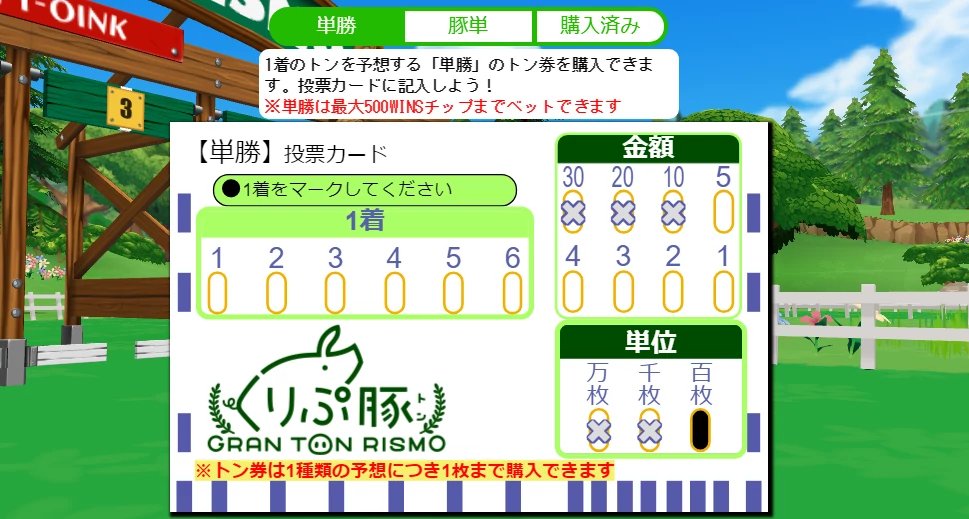 “単勝”是预测第一的猪。“豚単”是预测第一和第二的猪。