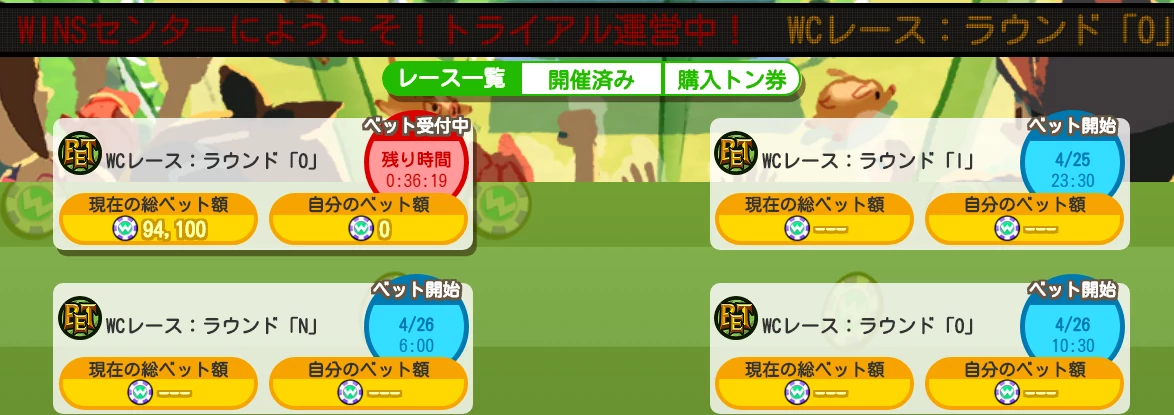 作为下注对象的比赛有,每场比赛的主赛和专门用于投注的WINS中心比赛(WC比赛)等等。