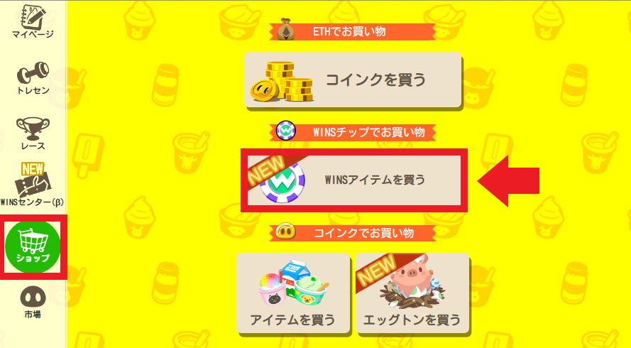 在商店里有叫做“WINSアイテムを買う”的项目,选择之后,就可以从WINS晶片兑换成COINC。