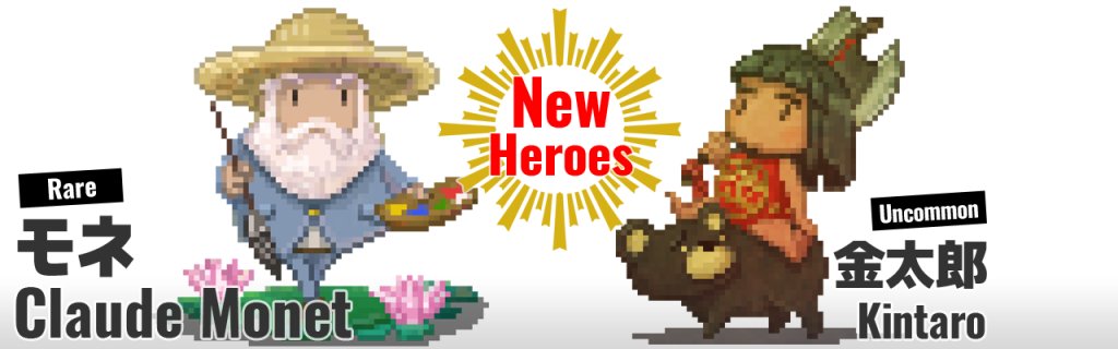 本篇介绍一下 《MyCryptoHeroes》将于5月7日开始贩卖的新英雄——莫奈、金太郎!
