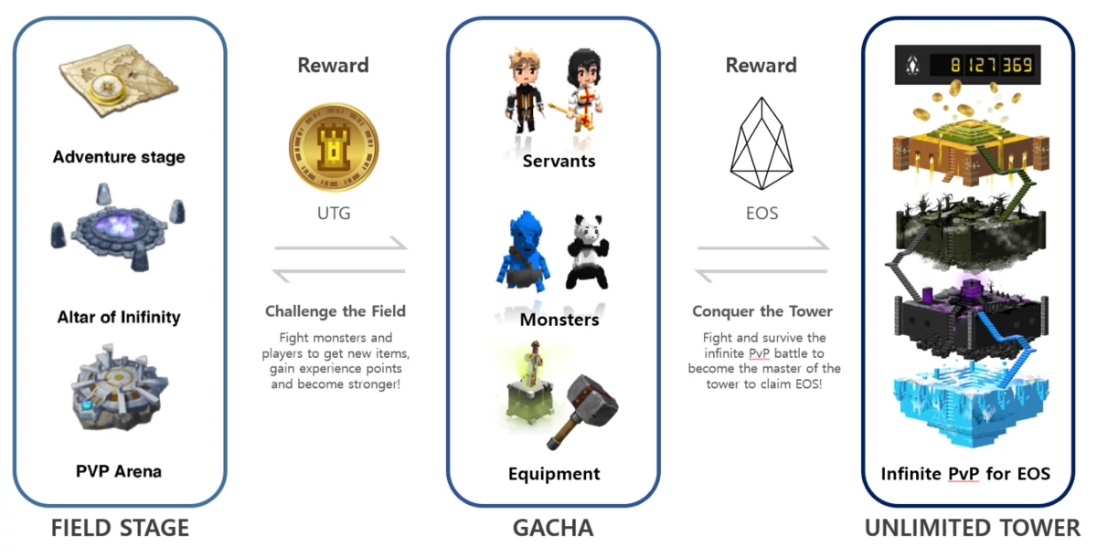 完成队伍组建后,玩家可以在Field Stage通过获得EXP、道具和UTG加强自己,并最终挑战在Unlimited Tower中获得EOS!