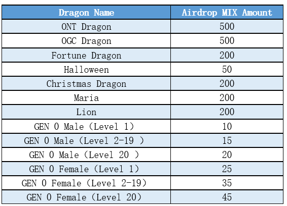 以下是官方给出的列表:(左列是龙的名字,右列是空投数)