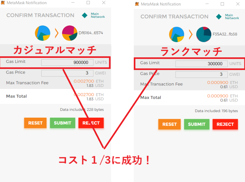 在弹出的Metamask内确认目标,现在能量,需消耗的能量后,对战申请就会提交。