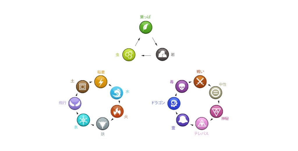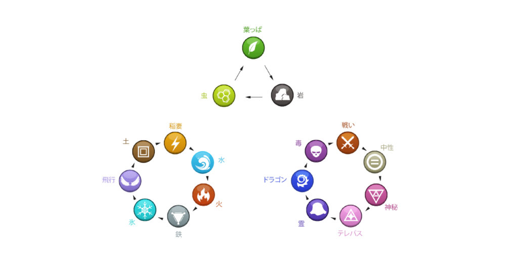 属性以图标结合文字的形式出现在精灵名的下方。根据精灵种类的不同,所拥有的属性为1-2个。