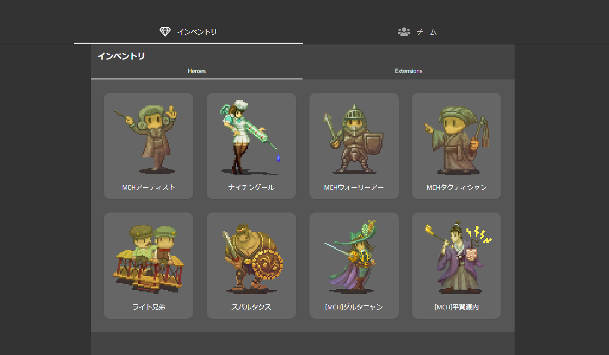 首先,在菜单里打开‘イベントリ’界面,选择想要编辑的英雄。