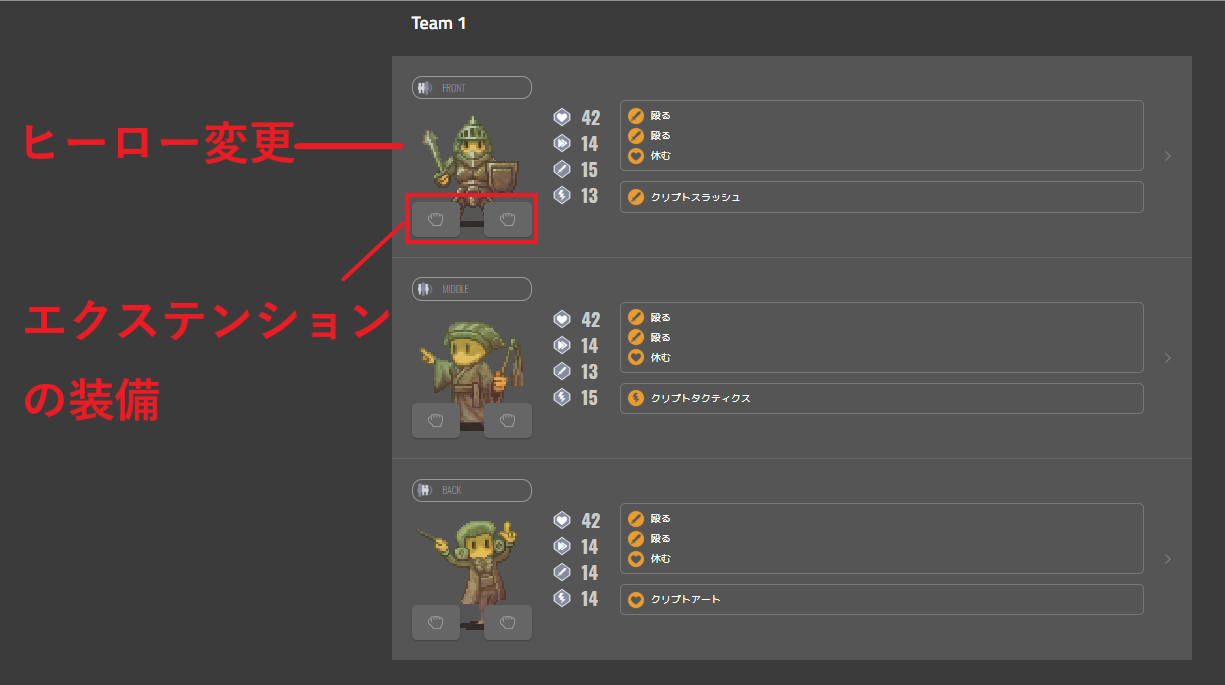 选择想要传送的英雄,打开如上图的画面,点击‘クリプトワールドへ伝送’后,即可完成传送。