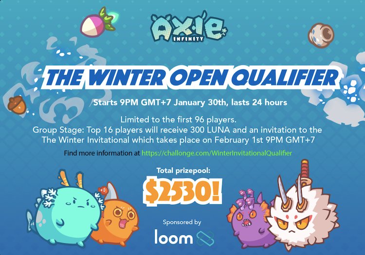 该游戏团队表示,1月30日开始,将会有最多96名选手参加。每组的获胜者可以获得300个LOOM币。比赛在1月31日结束,总获胜者将继续参加2月1日的冬季邀请赛。