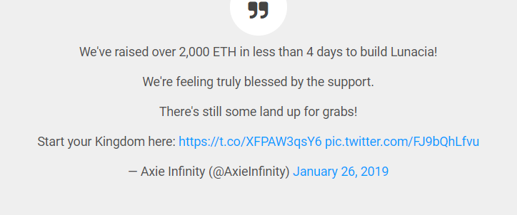 “我们在不到4天的时间内筹集了超过2,000个ETH来建造Lunacia!我们对这种支持感到非常幸运。”