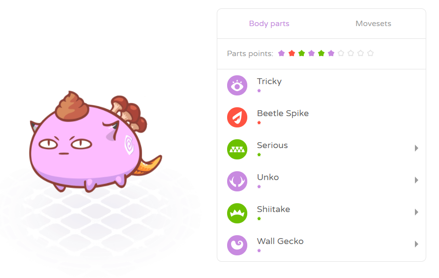 此外,下图所示的Axie身上,还存在着较为稀有的部位。