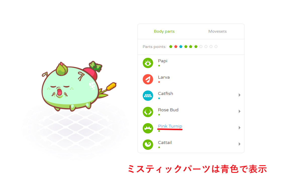 各部位的形状因Axie而异,是本作相较于其他游戏的特征。