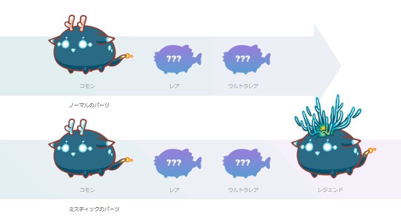 如果普通级的Axie身上存在神秘部位,则可进化至最终阶段的传说级。