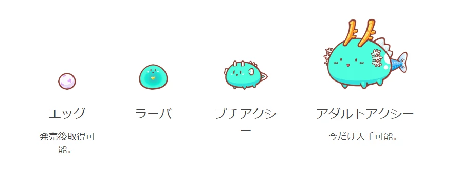 游戏商店中仅贩卖已成年的Axie。亦可从蛋的阶段开始培养。
