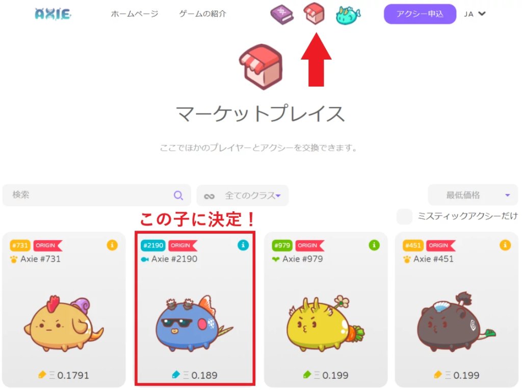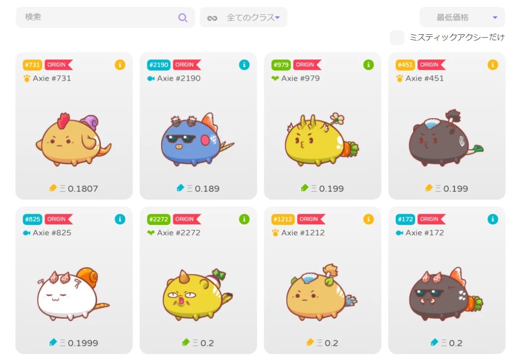 在市场上,玩家可自由出售自己所有的Axie,亦可购买其他玩家出售的Axie。