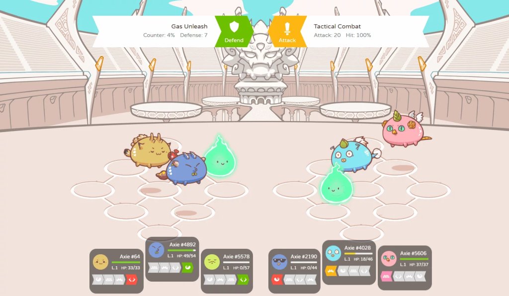 将Axie分别分配到前锋,后卫的位置之后,战斗就会开始。