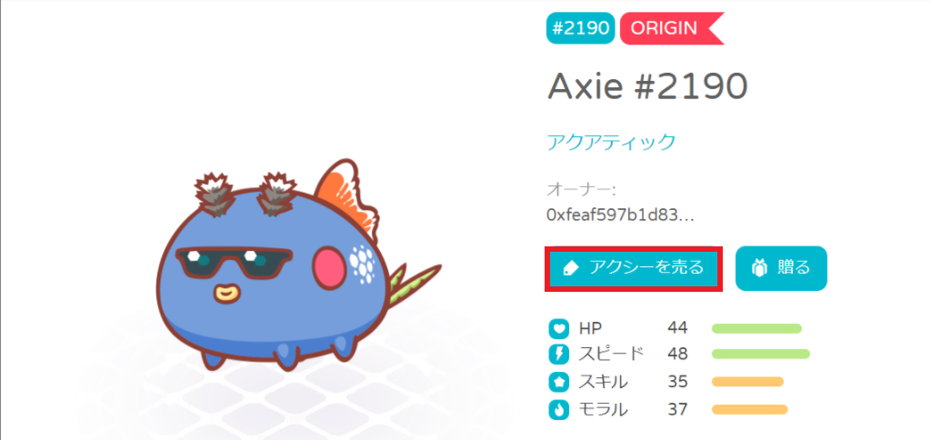 如果想要出售的话,点击‘マイアクシー’,并选择‘アクシーを売る’。