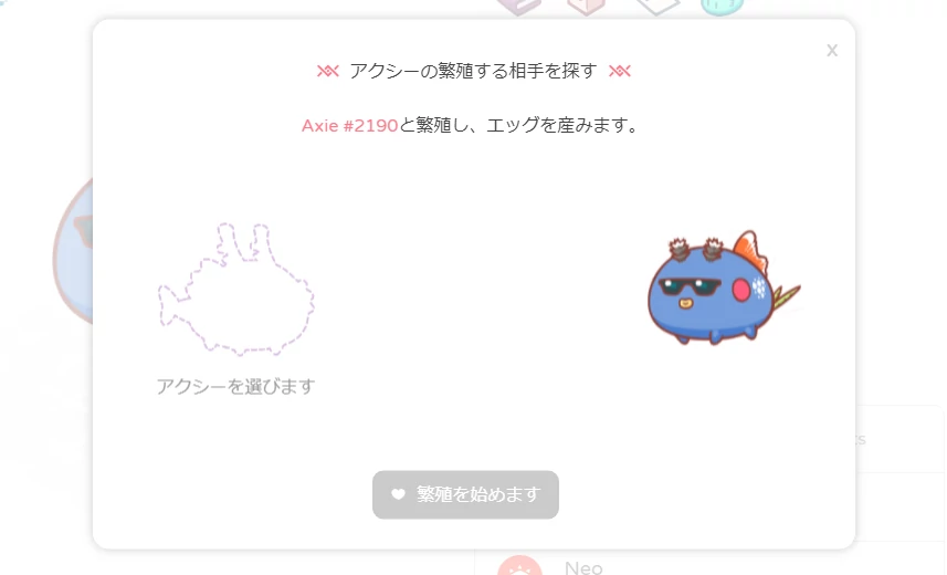 选择作为繁殖蓝本的Axie,然后点击繁殖按钮。