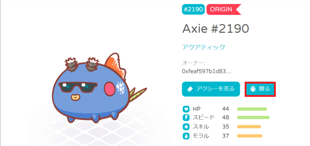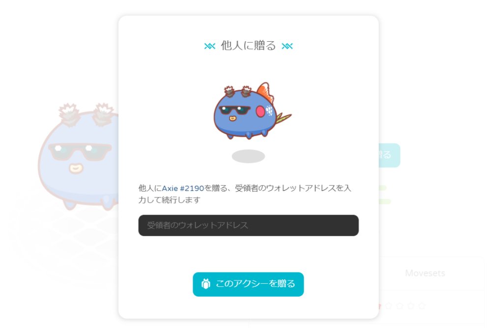 输入该玩家的账户地址之后,点击このアクシーを贈る,即可完成赠送。